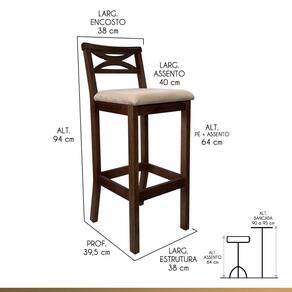Altura Pé até Assento: 64 Cm