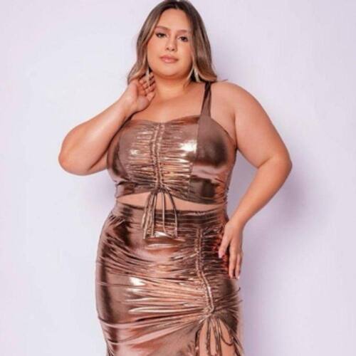 Conjunto Plus Size Feminino Top e Sai com brilho. CONJUNTO PLUS SIZE DE TOP E SAIA COM BRILHO, é um modelo lindo que você irá arrasar! Modelo confeccionado em malha fluid glam, um tecido de alta qualidade com elasticidade que veste em seu corpo.Conjunto acompanha top com alças que escondem o sutiã, decote coração e ajuste frontal podendo deixar o modelo ainda mais curto.A saia tem uma modelagem secretária, com fenda frontal, elástico no cós, cintura alta e ajuste por franzido.Especificações do produto:- Conjunto plus size com brilho- Confeccionado em malha fluid glam- Acompanha top e saia- Top alças que escondem o sutiã, decote coração e ajuste frontal podendo deixar o modelo ainda mais curto.- Saia modelagem secretária, fenda frontal, elástico no cós, cintura alta e ajuste por franzidoCódigo do produto: 10995 Marca: It Curves