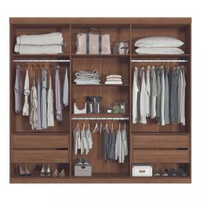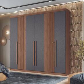 Características: Estrutura em MDP e MDF Acabamento em textura reverse semi-fosco 6 Portas 4 Gavetas 7 Prateleiras 3 Cabideiros em alumínio Corrediças telescópicas Puxadores em MDF Espaço para calçados