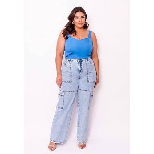 Calça Jeans Cargo  Plus Size  Wide Leg. Calça Jeans Plus Size com tecido mais claro detalhada com bolsos destacando um diferencial no seu modelo possuindo um belo encaixe ao corpo do usuário.Sendo confeccionada em algodao e um tecido liso proporcionando o melhor conforto,Seus bolsos espalhados pela calça faz um grande diferencial pois possuem ziper e proporciona segurança para guardar qualquer itensou objetos.