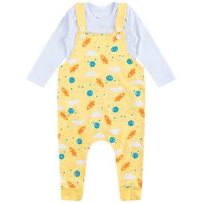 Conjunto de Inverno Menino jardineira longa em moletom Felpudo com body - Amarelo - G