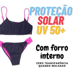 Destacando-se ainda mais, possui tiras duplas, adicionando um toque de feminilidade e elegância ao conjunto. Além disso, este biquíni oferece proteção solar UV50+, garantindo que sua pele fique protegida dos raios ultravioleta prejudiciais enquanto você desfruta do sol.