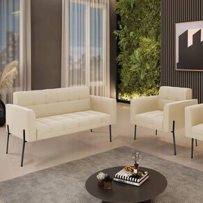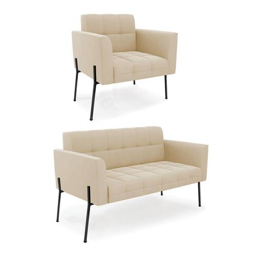 Estrutura: Madeira Eucalipto Espuma: D-23 Tecido: Suede Tipo de pés: Pé de Ferro Preto Peso suportado: Até 120 Kg Garantia: 90 dias contra defeito de fabricação Montagem: O produto vai montado, apenas parafusar a base Instruções de limpeza: Utilizar um pano limpo e levemente úmido Você irá receber: 01 Sofá Namoradeira e 01 Poltrona - Entregue em: 02 Volumes