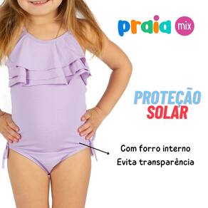 Maiô Infantil Lilás Com Babado Alça Fina Proteção Solar UV50 - Lilás - 2