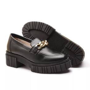Mocassim Feminino em Couro Tratorado Casual Corrente Moda - 40 - Preto