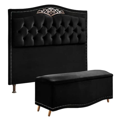 Conjunto Cabeceira e Calçadeira Holanda 140cm Veludo Shop das Cabeceiras - Preto