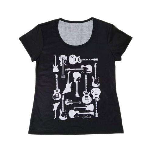 Camiseta Adulta Feminina Estampa Guitarras - Preto - M