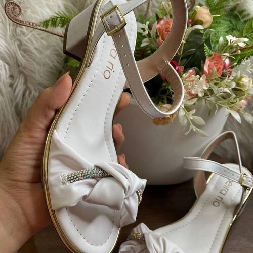 salto bloco baixo e confortavel, detalhes em dourado na sola, tiras em napa turim. Detalhe em strass, cor branca ideal para eventos sociais inclusive casamentos.