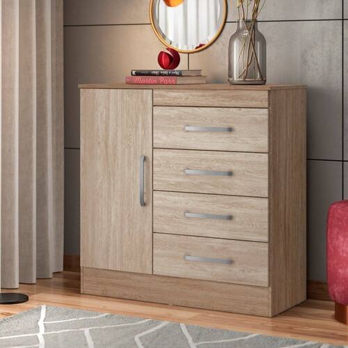 Cômoda 4 Gavetas 1 Porta Montevideu Demóbile - Bege Claro