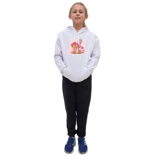 Kit Conjunto Infantil Blusa Moletom Canguru Menina Estampa Ursinho e Calça Jogger Com Bolso - Branco - 16