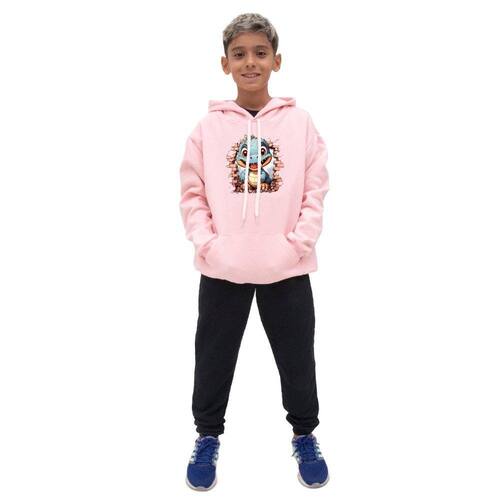 Conjunto de Moletom Canguru Infantil Menino Estampa de Dinossauro Com Calça Alta Qualidade - Rosa - 16