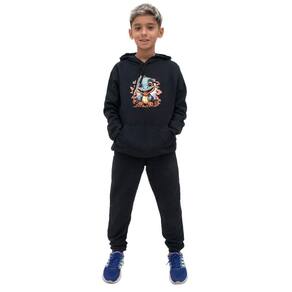 Conjunto de Moletom Canguru Infantil Menino Estampa de Dinossauro Com Calça Alta Qualidade - Preto - 8