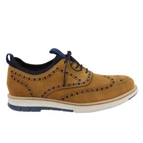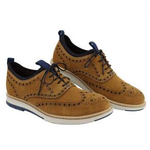 Sapato Masculino Oxford Couro Camurça Fechamento Cadarço Detalhe Perfurações Solado TR Confortavel - 39 - Amarelo