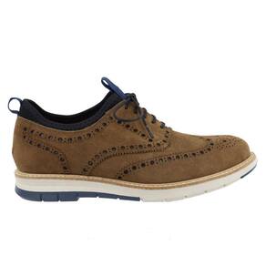 Sapato Masculino Oxford Couro Camurça Fechamento Cadarço Detalhe Perfurações Solado TR Confortavel - 45 - Marrom