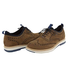 Sapato Masculino Oxford Couro Camurça Fechamento Cadarço Detalhe Perfurações Solado TR Confortavel - 38 - Marrom
