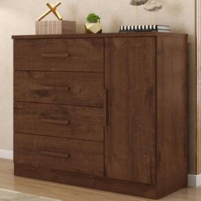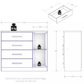 Características: Estrutura em MDP 1 Porta 4 Gavetas Corrediças metálicas Puxadores em MDF Produto suporta no total 28kg