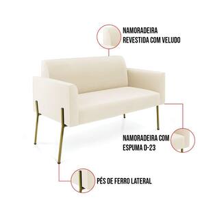 Sofá Namoradeira e Poltrona Pé de Ferro Dourado Salão Marisa Veludo D03 - D`Rossi - Bege