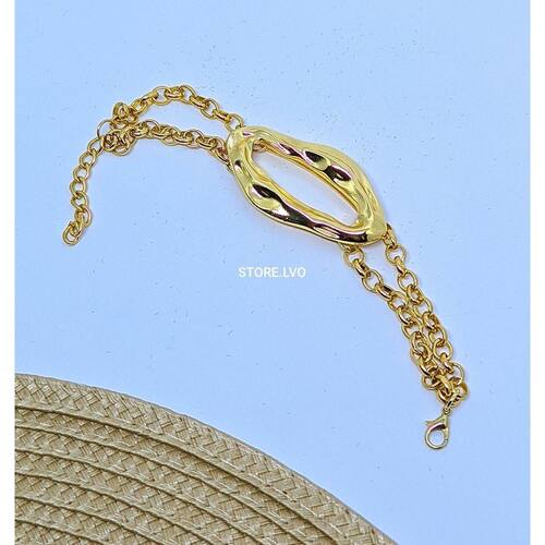 APulseira Corrente Elos Português com Pingene Orgânico, a personificação da resiliência que floresce nas mulheres que enfrentam os desafios da vida com coragem e determinação. Em formato martelado, tendência atual da moda, esse colar dourado exala a força e a beleza que as mulheres resilientes possuem em seu interior.