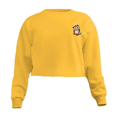 Blusa Cropped Moletom Coruja Feminino Personalizado com Cintura Descosturado - Amarelo - M