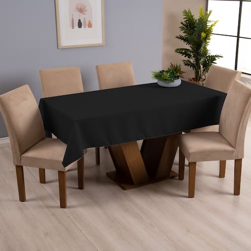 Toalha de Mesa 8 Lugares Tecido Oxford Liso 1 Peça Básica Cozinha Mesa de Jantar - Preto
