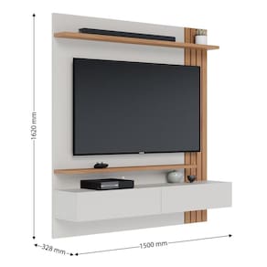 Minimalista e clean, o Home Suspenso Juriti é um painel funcional e uma ótima opção para clientes que buscam um móvel para otimizar o espaço para TV sem abrir mão de televisores maiores, seja ele na sala de estar, home cinemas ou até mesmo em quartos. Com ripados decorativos em sua lateral, possui uma prateleira superior e outra inferior, além de duas portas basculantes com espaço interno para acomodar objetos de maneira prática e organizada. Suporta TV até 65.