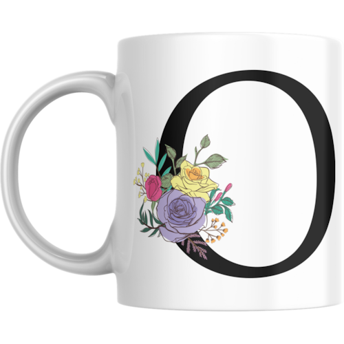 Caneca personalizada de porcelana de alto brilho, com interior e alça branca com linda Estampa Alfabeto Black.