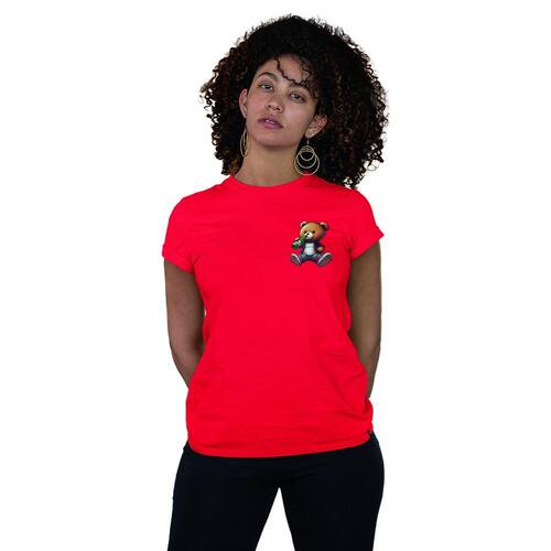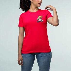 Camiseta Feminina Ursinho Pelúcia Estiloso Bebendo Cerveja - Vermelho - M