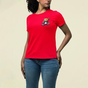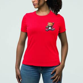 Camiseta Feminina Ursinho Pelúcia Estiloso Bebendo Cerveja - Vermelho - GG
