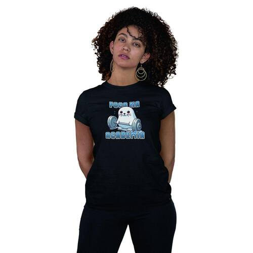 Camiseta Feminina Foca Na Academia Fitness Corrida Caminhar - Preto - M