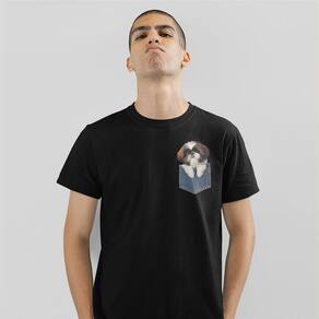 Leve um amigo fofinho para onde quer que vá com esta camiseta! Este adorável Shih Tzu está sempre pronto para sair do bolso e alegrar seu dia. Carinho garantido em todas as ocasiões!
