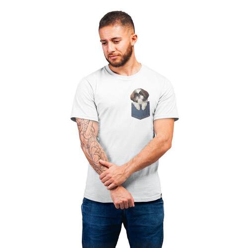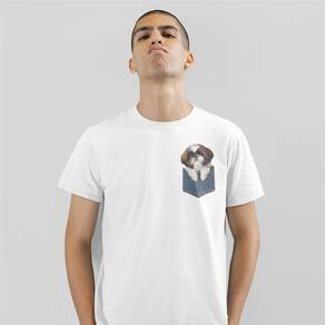 Leve um amigo fofinho para onde quer que vá com esta camiseta! Este adorável Shih Tzu está sempre pronto para sair do bolso e alegrar seu dia. Carinho garantido em todas as ocasiões!