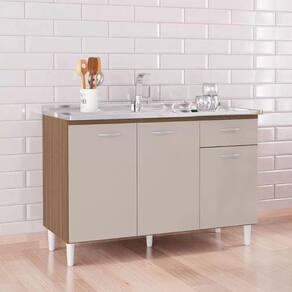 Balcão 3 Portas 1 Gaveta 1,20 m Poquema Móveis é compacto, prático e resistente, com um design moderno. Ideal para quem tem pouco espaço e busca qualidade com preço acessível. Pode ser utilizado para pia ou com tampo opcional.