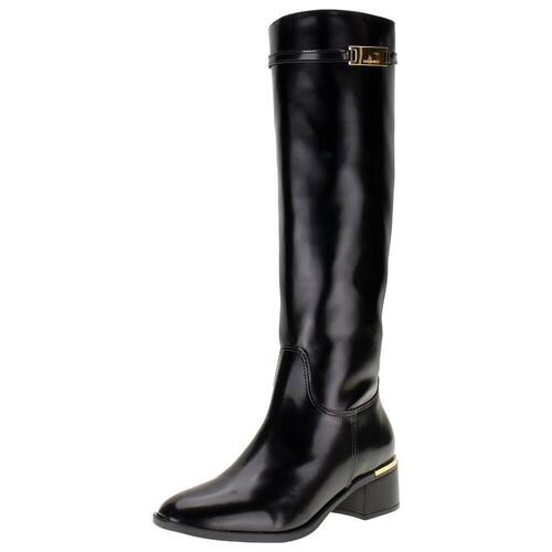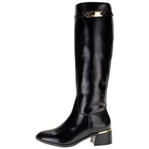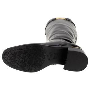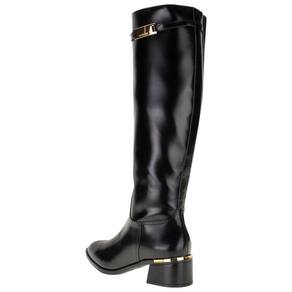 A Bota Feminina Cano Alto Via Marte é confeccionada em material New Box de alta qualidade com acabamento em costura e contém fechamento por zíper lateral, forro interno em têxtil, palmilha em PU e solado em borracha com salto grosso de cinco centímetros. Esse modelo possui um cano de quarenta e três centímetros de altura por quarenta e um centímetros de circunferência.