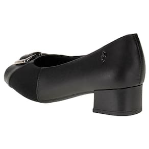 O Peep Toe Feminino Salto Grosso Usaflex é confeccionado em Couro com detalhe metalizado, acabamento em costura, forro interno em têxtil, palmilha em PU macio e solado em borracha com salto de quatro centímetros.