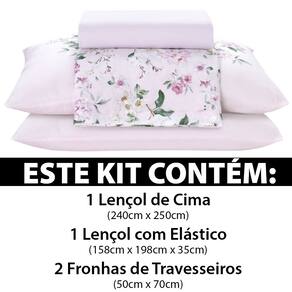 Jogo de Cama Queen 4 Peças Lençol com Elástico 100% Algodão Percal 180 Fios 158x198x35cm Dohler - Emcompre - Rosa