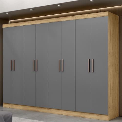 Guarda Roupa Casal 8 Portas 4 Gavetas Paris Maxel Móveis - Cinza