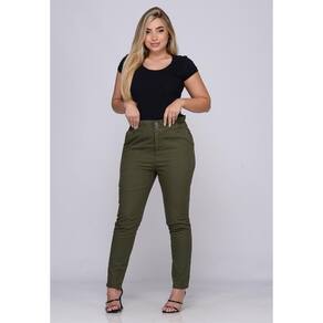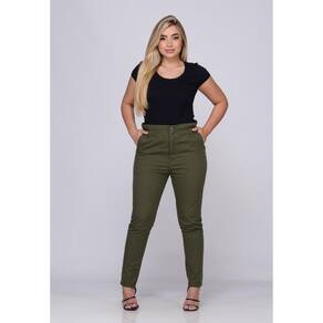 O modelo Clochard possui cintura alta, com elástico e passante no cós, com botão e ziper frontal e bolsos frontais.