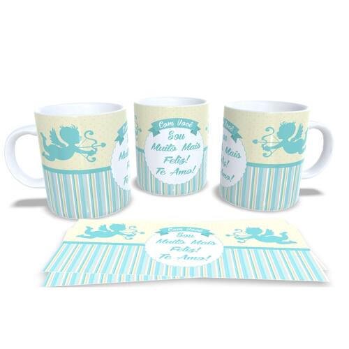 aneca personalizada de porcelana de alto brilho, com interior e alça branca com linda Estampa da Coleção Dia dos Namorados.