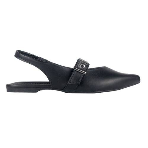 VIA UNO Sobre a marca: A Via Uno acompanha as principais tendências e lançamentos da moda mundial com o lifestyle urbano e moderno, oferecendo calçados versáteis, diversos estilos e muito conforto para a mulher contemporânea. Sapatilha com a traseira aberta. Ajuste da tira traseira com um pequeno elástico. Detalhe de fivela frontal e bico fino