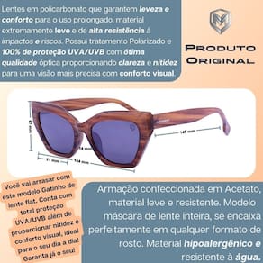 Todos os nossos modelos possuem lentes testadas e aprovadas garantindo total proteção UVA/UVB.