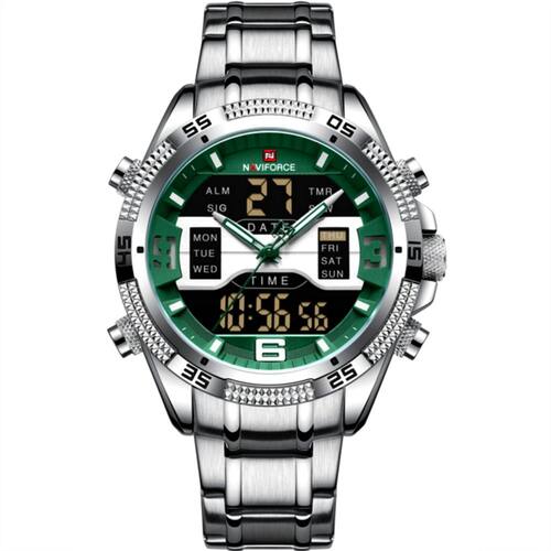 Relógio de masculino em aço inoxidavel luminoso display LCD design esportivo - VERDE