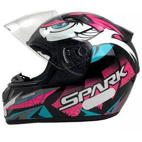 - 1 Capacete Ebf Spark Dragon Preto Rosa - 1 Narigueira Alta Big Universal - 1 Viseira Capacete EBF E0X Spark 2mm Polivisor Camaleão - 1 Adesivo Refletivo Preto
