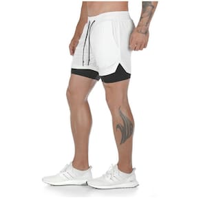 Os shorts 2 em 1, equilibra conforto e performance com uma camada externa de tecido leve e bermuda de compressão interna em Spandex.