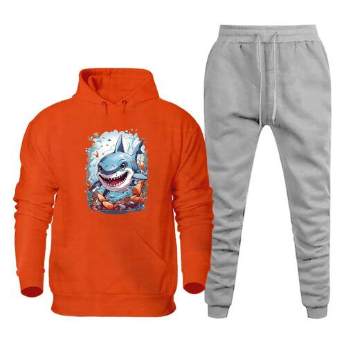 Conjunto Moletom Canguru Estampa Tubarao Plus Size Masculino Confortavel - Laranja - G4