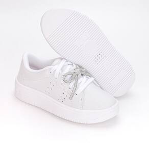 Tênis Casual Infantil Feminino Kidy Laço de Strass Branco - 32 - Branco