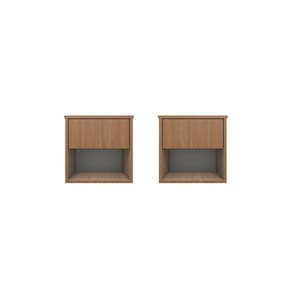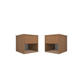 Kit 2 Mesas de Cabeceira Suspensa Retrô 1 Gaveta 100% MDF PlanCasa - Marrom