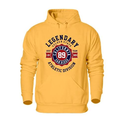 Blusa de Moletom Plus Size Masculina Flanelada Com Punho e Capuz Cordao Ajustavel Estampado Inverno - Amarelo - G1