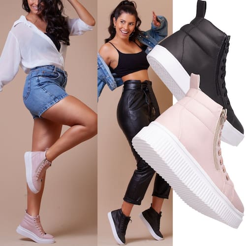 KIT COM DOIS PARES UM PA PRETO E UM PAR ROSA. 2 Botas Feminina Estilo Academia Com Solado De Borracha Descubra o Charme do Conforto para seus treinos ou passeio com nosso coturno femininoCaracterísticas Principais:Cabedal: Sintético Forro: Tecido AntibacterianoPalmilha: Confort Eva 4mmSola: Borracha AntiderrapanteAltura Da Sola baixa (preta): 3 Centrimetros Altura Da Sola plataforma (rosa): 5 Centrimetros Metais: AntioxidanteAjuste: Cadarço Fios De Algodão E Zíper ReforçadoPeso: 0.800g cada par.Atenção na hora de escolher seu tamanho, o Tênis possui FORMA NORMAL, pedir o número que já está acostumado a usar, temos aqui a abaixo uma tabela aproximada de cm da palmilha para usarem como referência.TAMANHO DE PALMILHA33 - 22.9 cm 34 - 23.2 cm 35 - 24.0 cm36 - 24.5 cm37 - 25.0 cm38 - 26.0 cm39 - 27.0 cm40 - 27.5 cmNão perca a chance de adicionar um toque de elegância e conforto ao seu guarda-roupa. Clique em "Comprar Agora" e experimente a combinação perfeita de estilo e comodidade com nossos Coturnos Femininos. Seu próximo par de sapatos favorito está a apenas um clique de distância!