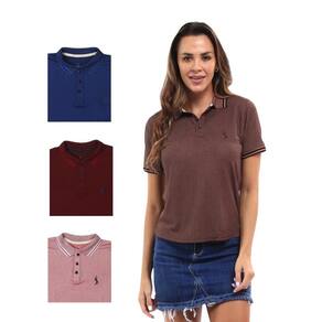 Camisa Polo Feminina Manga Curta Piquet Moderna Leve Kit 4