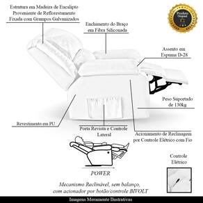 Poltrona do Papai Reclinável Melim Controle Power Elétrico Sintético PU FH1 - D`Rossi - Branco